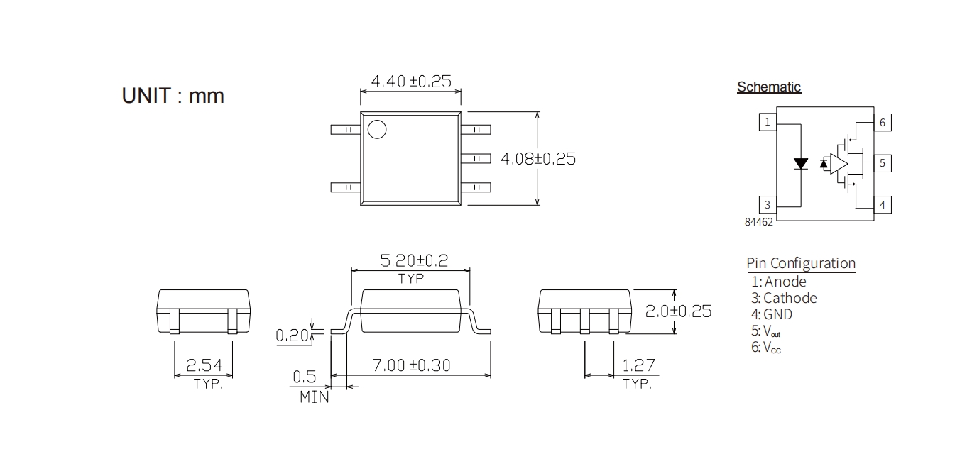 Product Package size(LxWxHmm) Data Transfer Rate (Mbps) Supply Voltage(V) tPHL(ns) tPLH(ns) IFT (mA) CTR(%) CMR(V/us) Io(mA) Topr (Min) (degC) Topr (Max) (degC) Viso (Vrms)