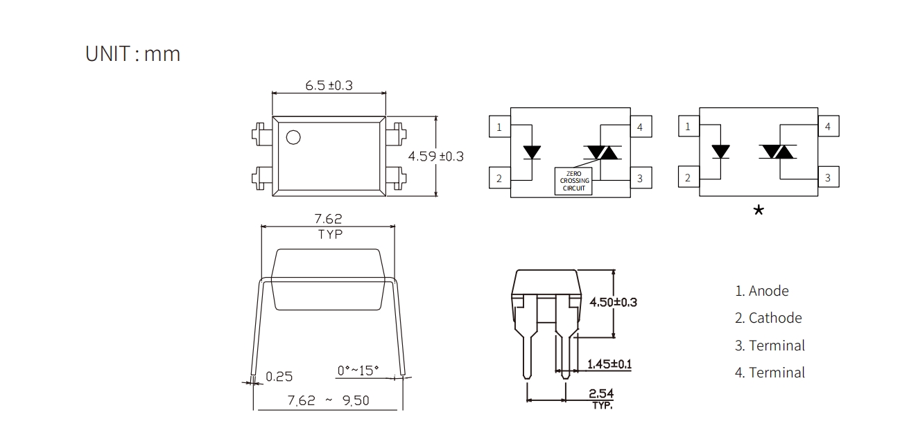 | Product | Package | size(LxWxHmm) | VF(V) | VDRM(Max) (V) | VTM(V) | VINH(V) | IT (rms)(mA) | IFT(mA) | Topr (Min) (degC) | Topr (Max) (degC) | Viso (Vrms) |